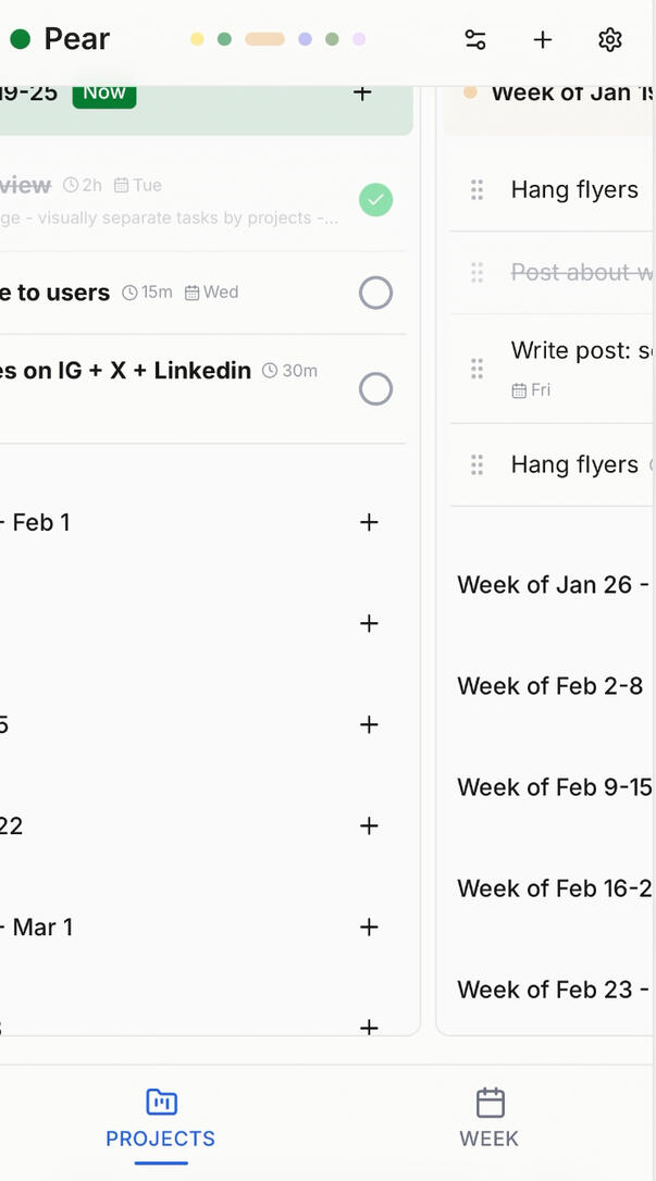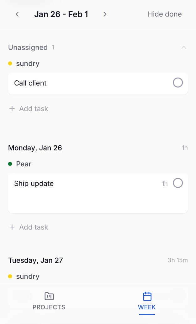 • Auto-sync between projects and week tab